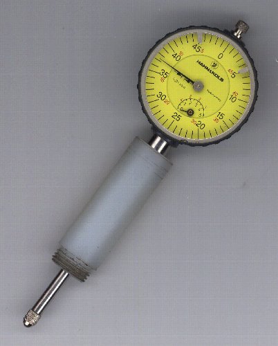 Bei einer richtigen OT-Messuhr wird diese minimale Auf- und Abbwegung mit einem präzisen Getriebe auf eine grossflächige Messanzeige übersetzt. Diese Messuhren selbst werden in der Industrie massenhaft eingesetzt. Sie werden dort zur Abtastung von Oberflächen und Wellen verwendet. Passend dazu erhältlich gibt es anschraubbare Verlängerungen in verschiedenen Längen. Das einzigste Problem wäre jetzt noch den passenden Adapter mit Zündkerzengewinde. Allerdings sollte ein fähiger Dreher der mechanischen Zunft die Herstellung eines solchen Adapters als Herausforderung nehmen. Die eine Variante wäre den Adapter aus Metall herzustellen, wodrin die Aufnahme der Messuhr dann mit einer Schraube fixiert wird. Die andere, welche ich besitze, wäre den Adapter aus einem zähen Kunststoff herzustellen, wobei die Bohrung im Adapter zur Aufnahme der Messuhr leichtes Passspiel hat. Dadurch klemmt die Messuhr ohne Klemmschraube und kann mit leichtem hin- und herdrehen auf die gewünschte Position gebracht werden.