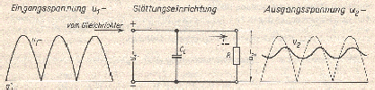 nun mittels Kondensatoreffekt diese pulsierende Gleichspannung in eine fast
