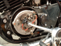 bis Zündzeitpunkt erreicht wird (RD250 = 2,0 mm vor O.T., RD400 = 2,3 mm vor